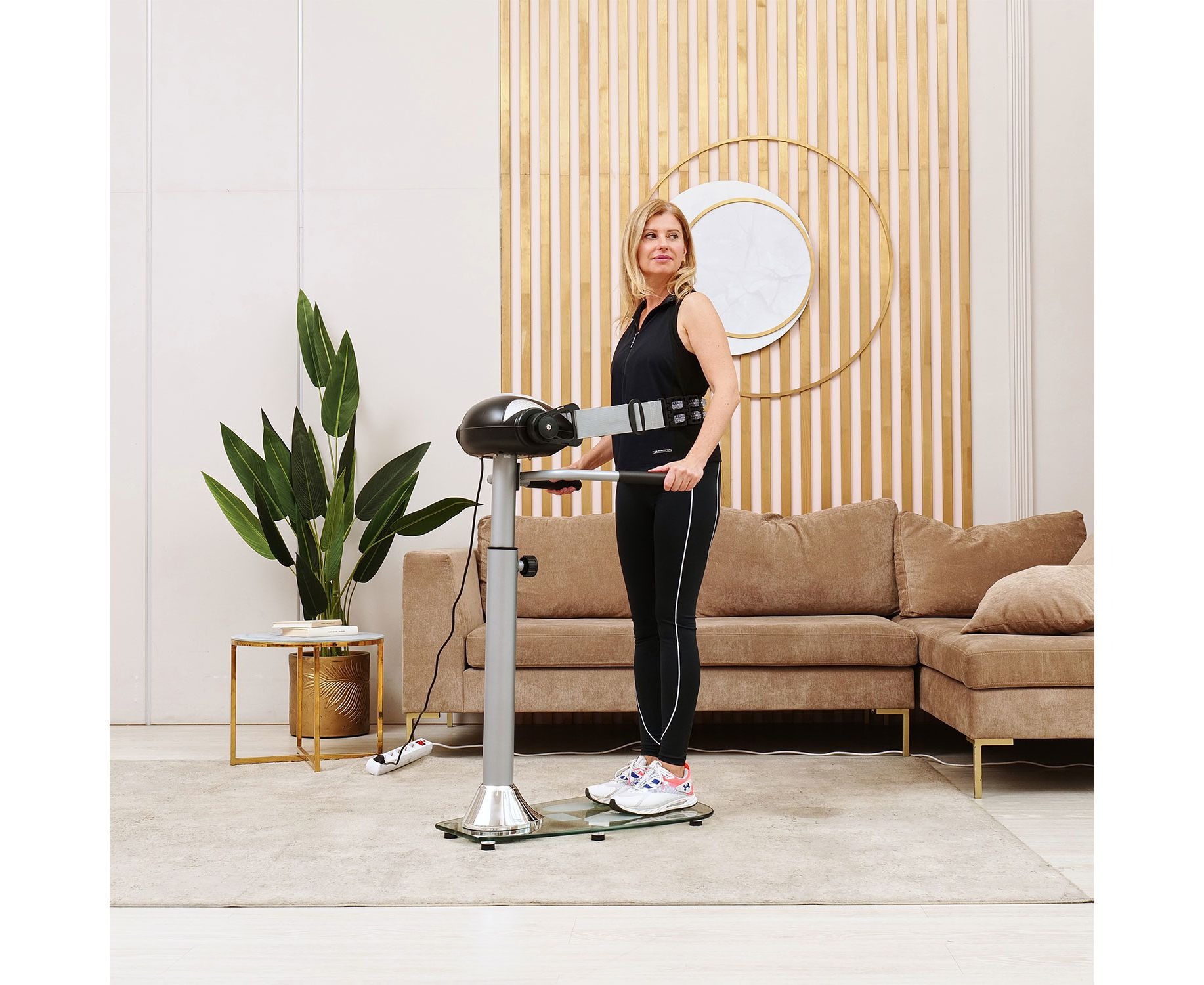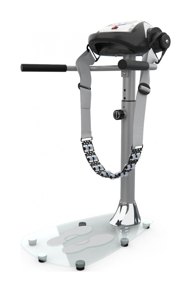 Удобство конструкции Массажёр имеет компактную и надёжную конструкцию. В качестве основания использована гальваническая труба диаметром 76 мм и толщиной 1,5 мм. Платформа выполнена из закалённого стекла. Максимально допустимый вес пользователя — 110 кг. В комплектацию входят 2 массажных пояса, которые крепятся к передней консоли. Для удобства и безопасности предусмотрены два поручня по бокам.